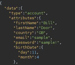 When creating a Starbucks account we are sending a POST request consisting of a specific format of JSON data to the API endpoint: /api/v2/account/. A sample account creation request would look something like this: