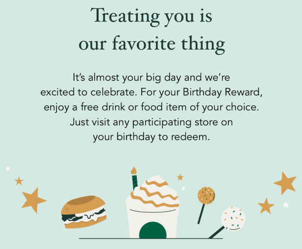With prior knowledge of Starbucks’ excellent birthday rewards policy, I changed my Birthday on my aforementioned gold account to 2 days in the future (an extra day just to be safe) and SUCCESS!